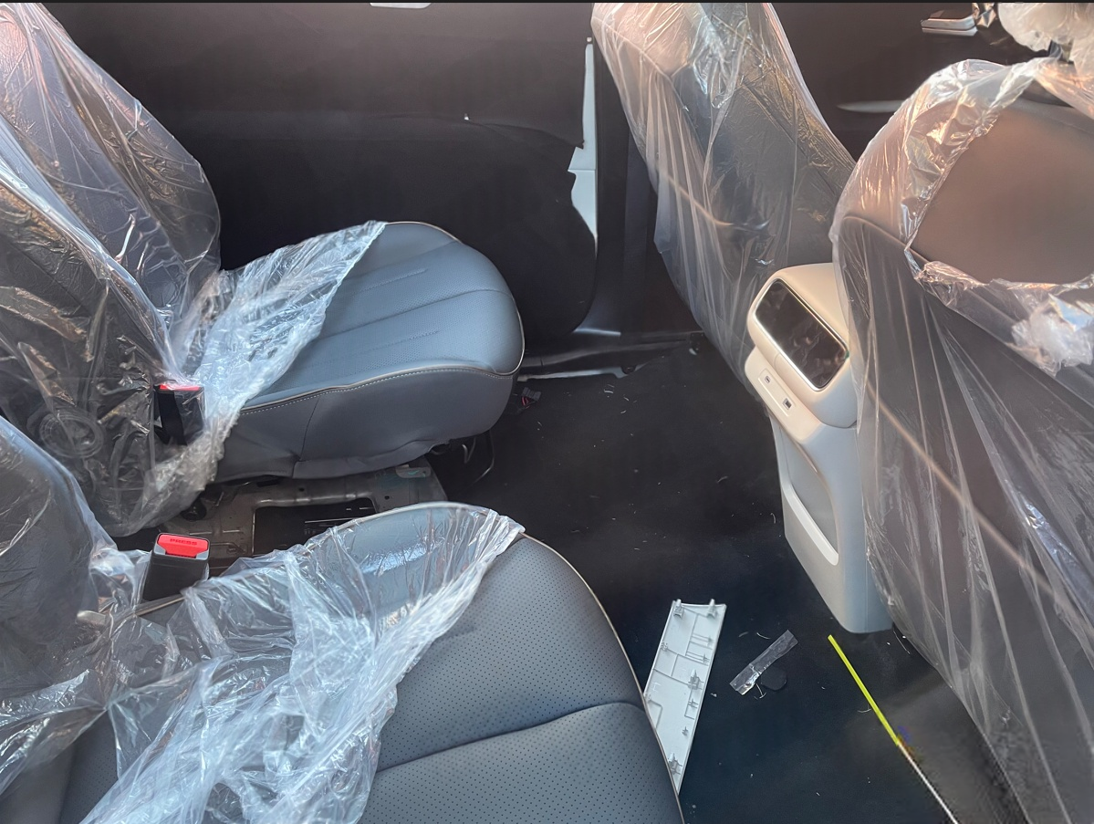 圖片中二排是6座布局,所以是兩個獨(dú)立座椅,所以看上去比較厚實,至于舒適性還得要體驗實車。中央島臺后方是觸控面板、Type-C接口和儲物格,而且整體的空間看上去非常大。